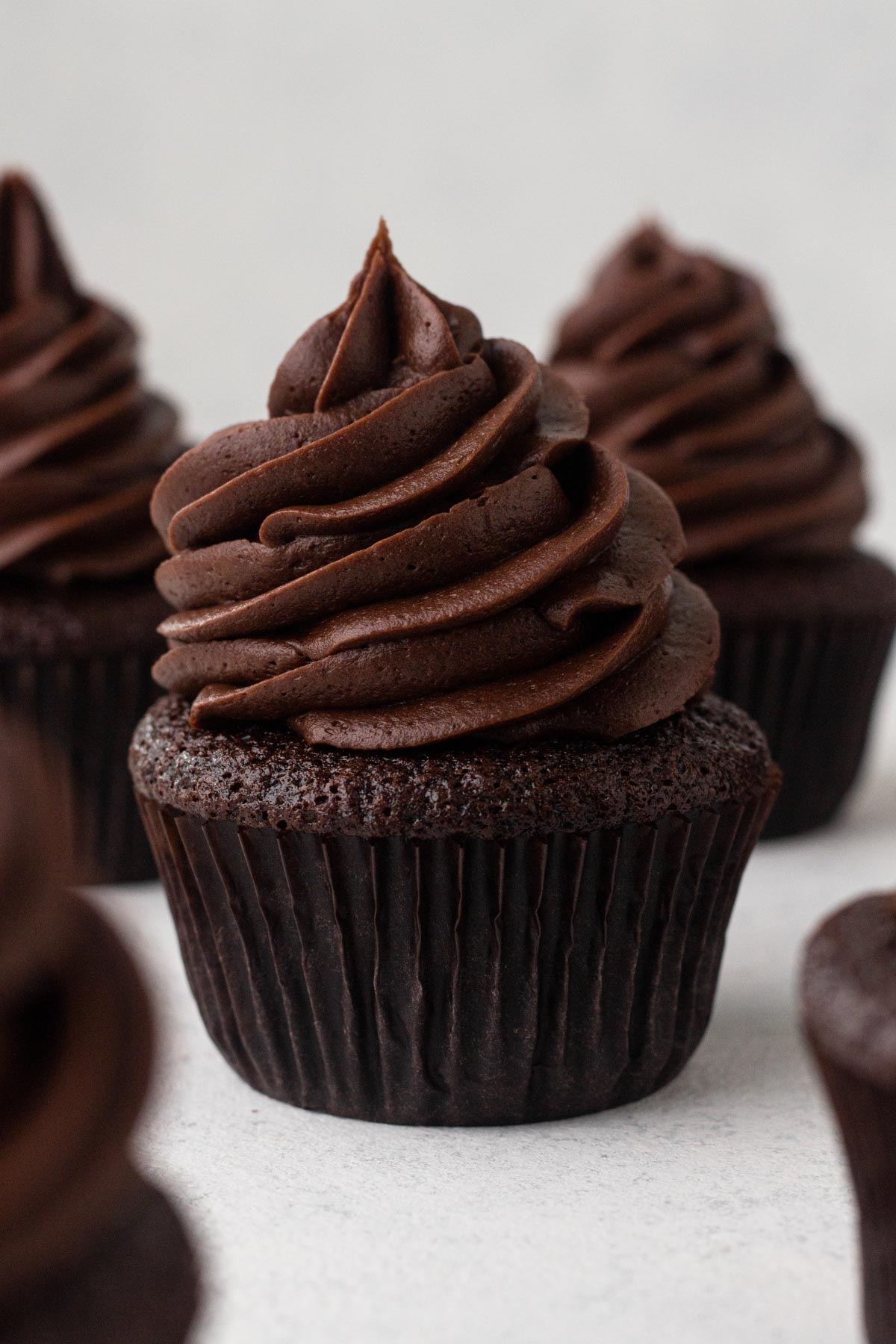 Built on the same tried-and-true batter as my beloved moist and fudgy chocolate cake, these cupcakes are every bit as moist, rich, and intensely chocolatey as the original. It's the kind of deep chocolate flavor that makes people ask for seconds!